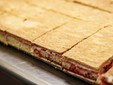 La diplomatica è un vanto della nostra produzione e si compone di strati di sfoglia, crema burro, pan di Spagna ed una bagna di Alchermes per renderla ancora più morbida, il tutto farcito con la nostra deliziosa crema. Ci tengo infine a sottolineare che la lavorazione sia per i baci che per la diplomatica è realizzata esclusivamente con ingredienti di nostra produzione”.
