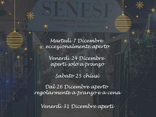 Se durante queste festività natalizie desiderate mangiare una 'Pizza speciale che sappia infondere emozioni' Gianni Senese ha creato una pizza speciale a sorpresa, con ingredienti tipici di questo periodo. Se poi volete trascorrere un veglione di Capodanno all'insegna della spensieratezza, allora venite alla Pizzeria Senese in via privata Scoglio, 14 a Sanremo in zona San Martino, vicino al mare ed alla pista ciclabile e sarete accolti come in famiglia.