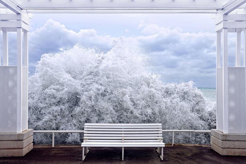 Da 10 anni, ogni volta che una tempesta si abbatte sulla Costa Azzurra, se ne va a fotografare le sue Onde: giorno e notte, dall'autunno alla primavera, sotto il sole o sotto la pioggia, con una panchina, due panchine e anche senza ...