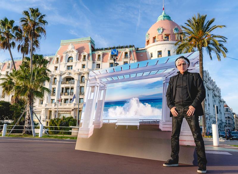 Oggi Bruno Bébert espone le sue Onde nel luogo in cui ha scattato la prima foto, sotto il pergolato di fronte all'Hotel Negresco.