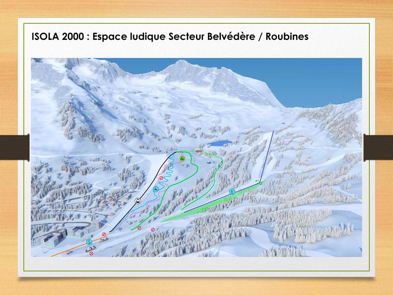 - Realizzare un'area giochi nel settore Belvédère - Roubine prevedendo l'installazione di uno slittino su binari utilizzabile tutto l’anno, lo sviluppo di una pista per slittini sulla neve, la creazione di una tyrolienne e lo smantellamento dell'impianto di risalita del Belvédère sostituito da uno nuovo.