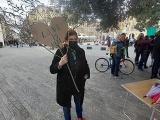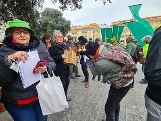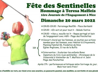 Poi un turbinio di emozioni vedendo tutti quei cartelli con scritte arcobaleno, quei balli che mi ricordano il mio Piemonte, tutti quegli strumenti musicali che rimbombavano nell'aria mi hanno fatto scoppiare il cuore di gioia. Tu sarai sempre con noi Teresa. Scusami ma non potevo non mettere qualcosa di rosso, lo striscione me lo perdonerai lo so”, con queste parole la “nostra” Patrizia Gallo, che ha curato la rassegna fotografica, commenta la prima “Fête des sentinelles, journée de l’engagement à Nice”, dedicata alla memoria di Teresa Maffeis, la “pasionaria verde” deceduta lo scorso febbraio.