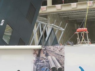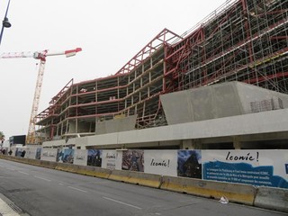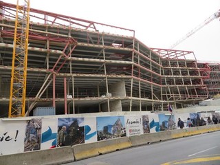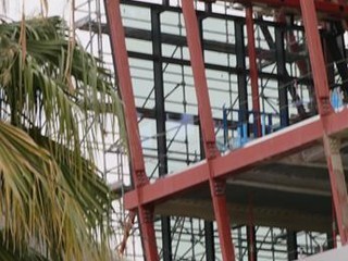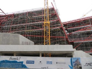 È iniziata l’operazione più delicata, quella di sistemare le pesanti lastre di vetro. che raggiungono i 250 chilogrammi di peso, per ora sulla parete Nord del Diamante, la struttura che sta nascendo a Nizza a lato della Gare de Thiers.