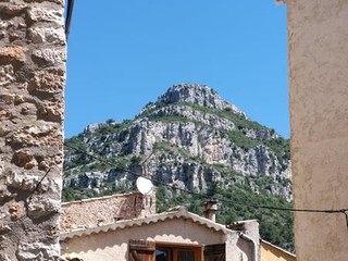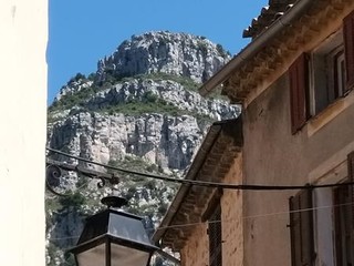 Il paese è arroccato ai piedi del Baou (800 m), una scogliera che attira numerosi escursionisti e scalatori, e domina la valle del Cagne in cui sorgono i resti di un antico ovile, il Castellet.