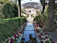 Seguono le cascatelle, i tempietti, le lanterne del giardino giapponese, agavi e cactus giganti nel giardino esotico, la rosaio, per finire nel trionfo del giardino alla francese con il tempietto dell’amore del tutto simile a quello del parco di Versailles e il grande bacino fiorito di loto e di ninfee.