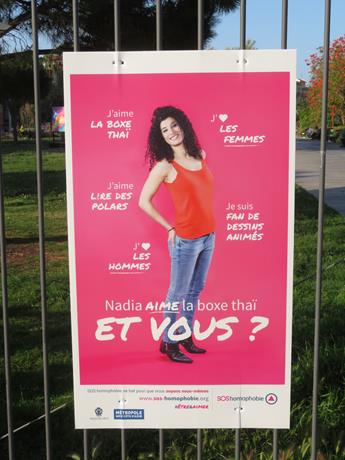 Alle porte della Promenade du Paillon sono stati affissi una serie di fotografie che invitano ad essere informati e ad attivarsi contro l’omofobia.