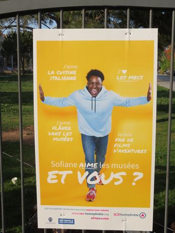 Fino a domenica 22 maggio, la campagna nazionale "Essere e amare" dell'associazione SOS omofobia trova diffusione a Nizza, lungo Promenade du Paillon e, in formato digitale, in tutto il territorio cittadino.
