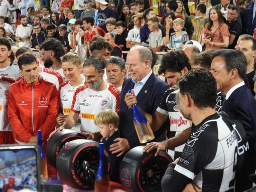 Una grande serata di sport, beneficenza e di festa in diretta su Sky Sport F1 HD e Sky Sport 1. Martedì 24 maggio è la data che ha ufficialmente segnato il ritorno in azione della Nazionale Piloti allo Stadio Louis II di Monaco ed è stata un’occasione speciale per festeggiare i 30 anni dalla fondazione dello Star Team: alla presenza di S.A.S Principe Alberto II, entrambe le squadre sono scese in campo per regalare spettacolo, emozioni e momenti di solidarietà -a partire dalla consegna di una maglia celebrativa della Nazionale Piloti firmata da tutti i piloti presenti e consegnata a S.A.S Principe Alberto II, per poi concludere con il trofeo speciale regalato a entrambe le squadre al termine della partita.