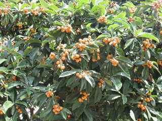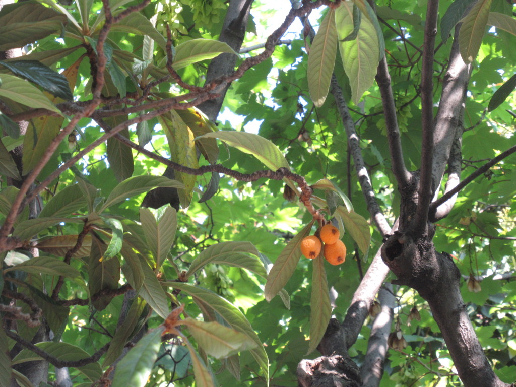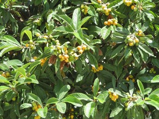 Alberi di nespole, con i loro frutti gialli, che maturano sulla pianta, foglie verdi consistenti e robuste, se ne incontrano ovunque.