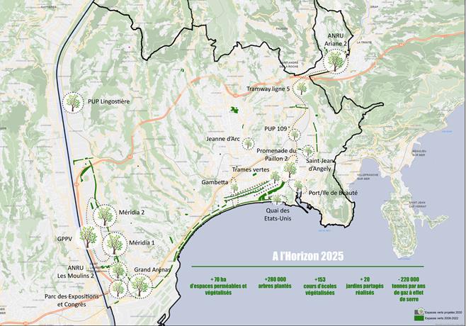 Ultimamente è stata inaugurata Place Grimaldi e la Promenade du Paillon, vero polmone verde, sarà ampliata fino alla Fiera di Nizza. L’obiettivo è di creare una città verde: 70 mila alberi sono stati piantumati e altri 280 mila alberi lo saranno nei prossimi 4 anni.