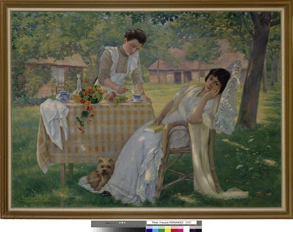 Julie de CISTELLO, Sous les pommiers ou Le thé à la campagne, 1912, huile sur toile, N.Mba 2022.0.1, musée des Beaux-Arts Jules Chéret, Nice © Photo François Fernandez