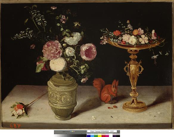 Atelier de Jan II BRUEGHEL, Fleurs et objets d’orfèvrerie, vers 1620, huile sur cuivre, N.Mba 687, musée des Beaux-Arts Jules Chéret, Nice © Photo François Fernandez