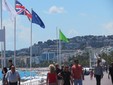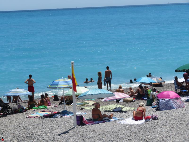 La Promenade des Anglais è più imbandierata che mai: non solo con i “drapeaux” della città e di varie nazioni, oltre che dell’Europa, ma anche con quelli che indicano lo stato delle spiagge e dell’acqua.