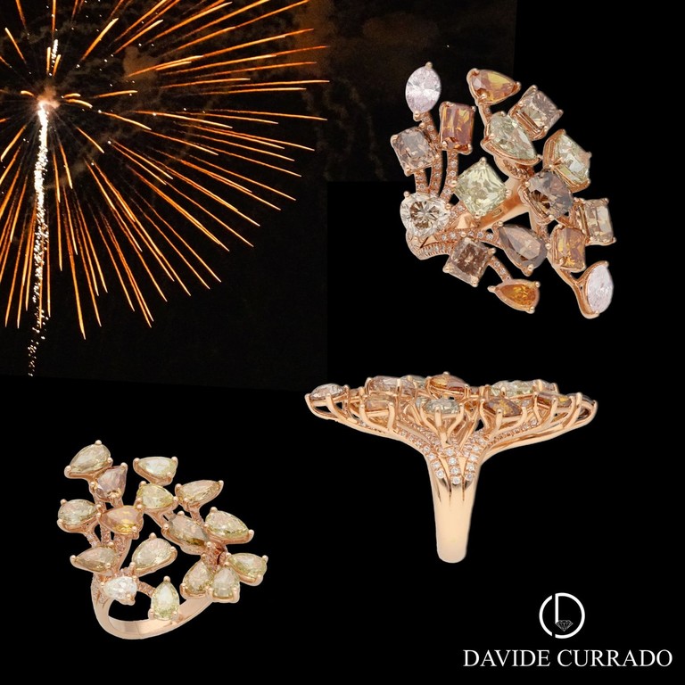 Da pochi giorni presso la Gioielleria Davide Currado a Sanremo è possibile ammirare la nuova Collezione 'Fireworks'. Una collezione esuberante che gioca con i colori e le nuances dei materiali preziosi e che prende spunto dalla “forma” caratteristica dei fuochi d’artificio. Infatti, a pochi istanti dalla loro accensione, si presentano come una sottile scia luminosa, quasi impercettibile, per poi esplodere una volta raggiunto il culmine della traiettoria, in tutta la loro bellezza, irradiando l’ambiente circostante. La Collezione annovera tre anelli, disegnati e prodotti nel 2015. Davide Currado si è ispirato ai giochi pirotecnici, riproducendo la striscia luminosa con steli in oro e diamanti taglio brillante, volutamente di piccole dimensioni, per poi terminare, nel fascino disarmante delle incantevoli declinazioni di colore, che solo i migliori diamanti fancy possiedono.