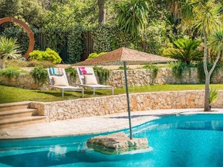 La villa è dotata di straordinari servizi esterni tra cui una doppia piscina a sfioro con fantastiche viste sul Mediterraneo, luoghi per cene all'aperto con grill, un salone sopraelevato su una piccola torre appena sopra l'acqua e un doppio garage vicino ai cancelli. La villa è circondata da lussureggianti giardini mediterranei.