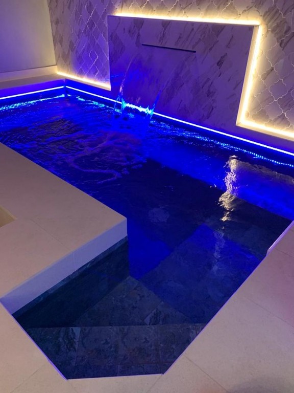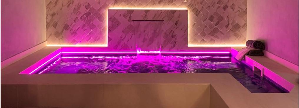 I proprietari si sono affidati ad Acquapro che ha pensato alla soluzione ideale per realizzare una piccola piscina interna dove abbandonarsi alla magia dell’acqua e dei colori.