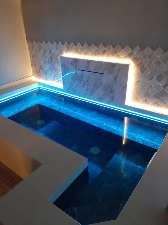 Dopo alcuni incontri per capire quali fossero le esigenze e vari sopralluoghi per conoscere il sito del progetto, sono state sviluppate alcune proposte per poi approdare alla soluzione perfetta per quegli spazi colmi di storia. Aprendo la porta della della piccola spa si viene accolti dalla scenografica lama d’acqua incorniciata tra i bei muri in pietra a vista. La cascata invita a entrare nella vasca riscaldata, a godersi il massaggio delle bocchette ad aria e a rilassarsi con la cromoterapia che attraverso i colori delle luci LED a filo acqua trasforma la stanza in un vero luogo d’incanto!