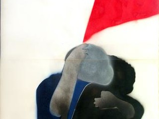 Franco Angeli, Abbraccio eterno, 1968, peinture à l’émail sur carton, 140 × 100 cm. Collection Dello Schiavo, Rome. © Franco Angeli – Adagp, Paris