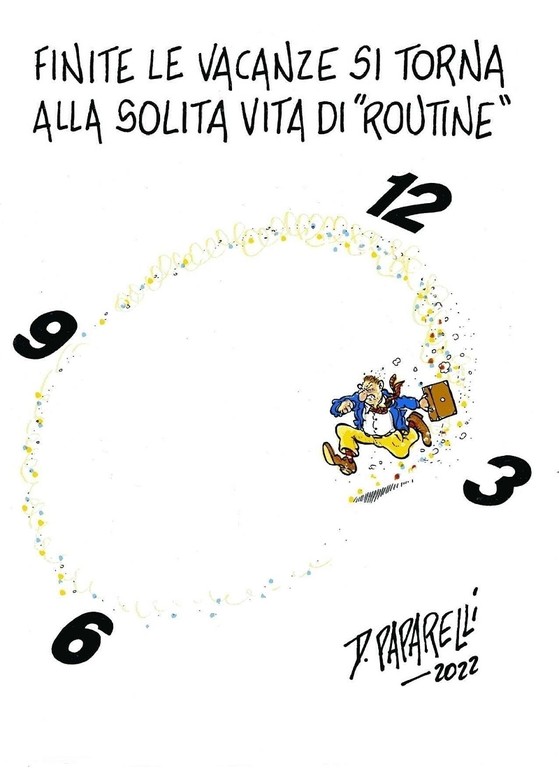 Il nostro collaboratore Danilo Paparelli, noto vignettista che ha firmato anche alcuni carri del Carnevale di Nizza, ha dedicato alla fine delle vacanze e al ritorno alla solita routine una simpatica vignetta che ben si adatta al momento.