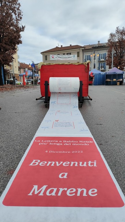 Monica Pagella, con emozione e soddisfazione “… voglio ringraziare tutte le persone che hanno creduto in questo progetto e che hanno permesso la sua realizzazione. I raggi di sole che durante la mattina hanno accarezzato i nostri visi sono stati percepiti come delle carezze rivolte ai bambini e alle famiglie Ucraine che da molti mesi stanno vivendo una situazione drammatica causata di interessi che fatichiamo a comprendere. Più volte mi sono fermata con piacere a osservare le persone che, con gioia e spensieratezza, leggevano le letterine lungo le strade di Marene e che si intrattenevano a parlare con gli espositori presenti al mercatino presente in piazza. È stato bello ammirare come centinaia di bambini chiedevano ai loro genitori di poter fare una foto ricordo con Babbo Natale!”