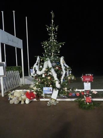 O scrivano un messaggio inserendolo nella buca delle lettere che è posta vicino all’abete.