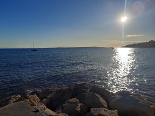 Da Golf Juan fino a Cap d’Antibes, con vista sull’Esterel e le Isole Lerins ed anche sul villaggio di Cagnes e su Saint Laurent du Var.