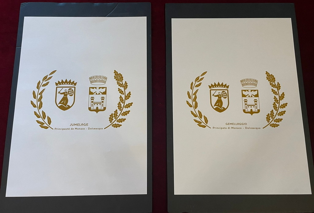 Alla presenza di una piccola delegazione di amministratori del paese dei Doria, tra cui il Sindaco Fulvio Gazzola, è stato inoltre presentato il logo ufficiale del gemellaggio, raffigurante gli stemmi dei rispettivi comuni e la parola "jumelage-gemellaggio".