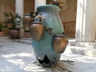 Iniziamo la visita dal pian terreno: noto che gli animali sono figure ricorrenti nella mitologia greca, del resto «Kérylos» significa «rondine di mare», l'uccello che annunciava presagi favorevoli …