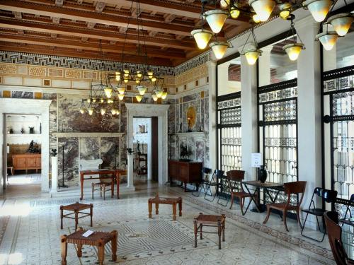 Gli affreschi sono splendidi e si ispirano a scene mitologiche, i pavimenti sono in mosaico multicolore con forme geometriche … Come «Sibilla» cammino in questo universo ellenico... sono completamente immersa in questa civiltà scomparsa…