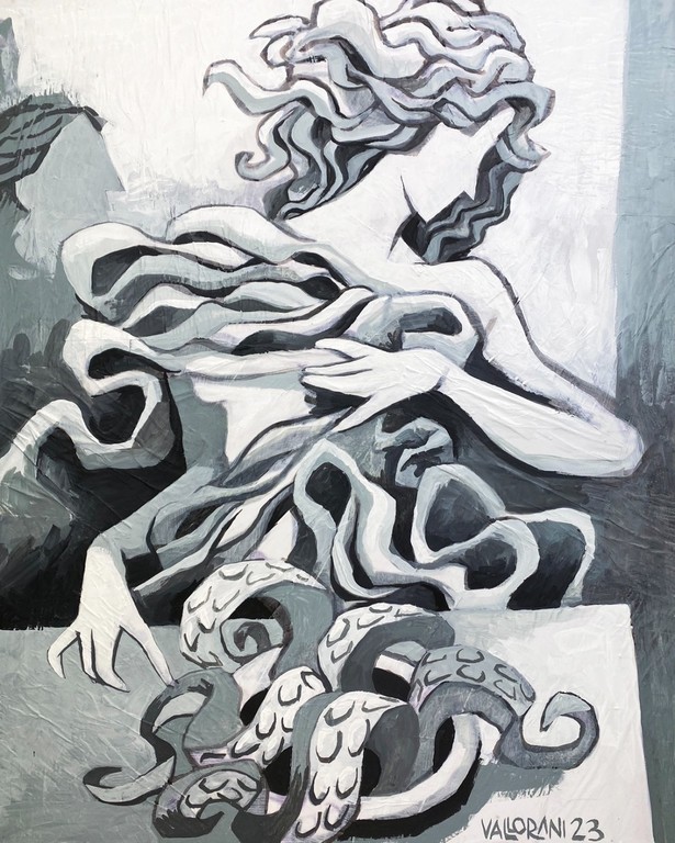 L’arte di Giorgio Vallorani rappresenta una proposta innovativa di rilievo, un percorso che prende forma sull’iPad e si trasforma sulla tela, un lavoro à rebours, controcorrente: comincia in digitale e si trasforma poi in colore e materia. Effetto, espressione, potenza, ma anche sgomento e passione: le sue opere racchiudono una forza comunicativa che accende e i suoi soggetti, immoti nel volto, prendono vita dalle pennellate, prima in digitale e successivamente sulla tela, col pennello.