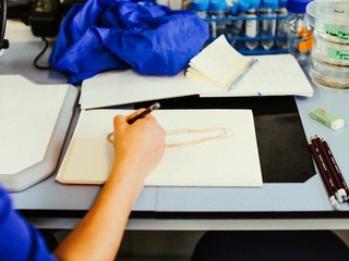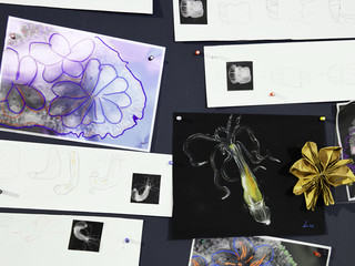 Così, disegni, opere in vetro e in ceramica e dipinti testimoniano questa ricerca che associa il Laboratorio di Biologia dello Sviluppo di Villefranche-sur-Mer con l'Istituto del Mare di Villefranche e l'Istituto per la ricerca sul cancro e l'invecchiamento di Nizza.