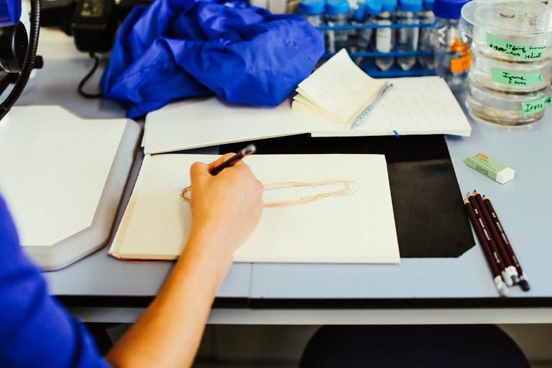 Così, disegni, opere in vetro e in ceramica e dipinti testimoniano questa ricerca che associa il Laboratorio di Biologia dello Sviluppo di Villefranche-sur-Mer con l'Istituto del Mare di Villefranche e l'Istituto per la ricerca sul cancro e l'invecchiamento di Nizza.