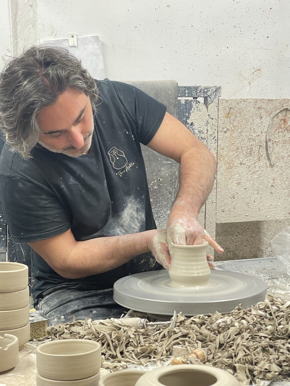 Accanto ai grandi nomi, consacrati all’arte, ci sono poi i giovani artisti ceramisti come Tino Aiello che nel suo laboratorio permette anche di misurarsi con il tornio e di creare piccoli manufatti sotto la guida della sua conoscenza.