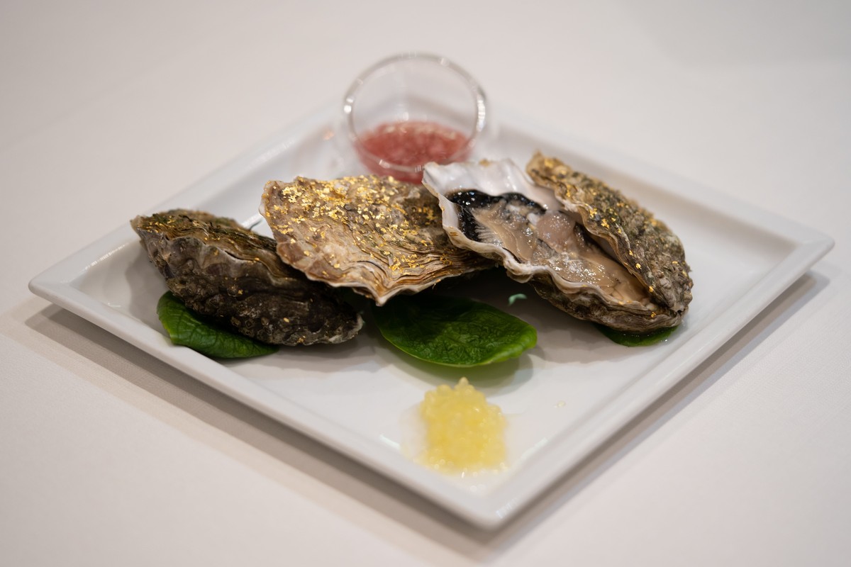 Se volete rendere il vostro aperitivo ancora più chic, potrete gustare le Ostriche “ Regal Or ”,la selezione più pregiata della Maison Boutrais, ricoperte di petali d’oro, dolci, carnose e di lunga persistenza al palato.