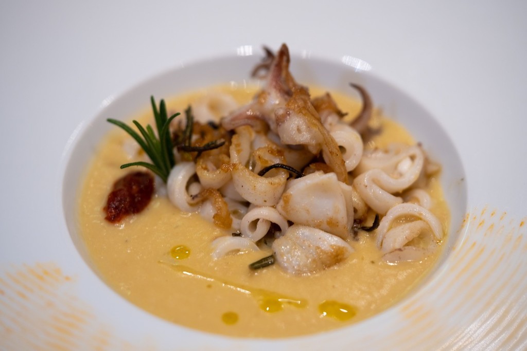 E poi i piatti della cena, quelli in carta con Tartare e Carpacci di carne e soprattutto di pesce, all’Amatriciana di mare con calamaretti e Guanciale filettato, la coscia d’Anatra cotta a bassa temperatura e il controfiletto di manzo alle fave di cacao e quelli in lavagna, tutti di pesce, tutti i giorni diversi.