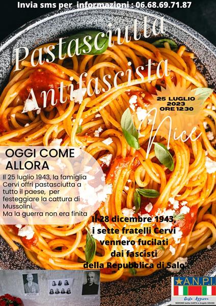 Nelle stesse ore nelle quali a Rosà, in Veneto, la sindaca vietava per ragioni di ordine pubblico la tradizionale “pastasciutta antifascista”, a Nizza (555 chilometri di distanza), località nella quale Sandro Pertini visse da esule, è stata organizzata, senza alcun problema, una pastasciuttata antifascista.