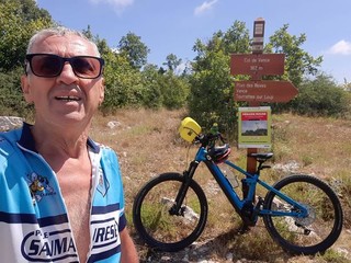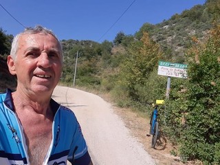 In sella alla nuova bicicletta, Danilo Radaelli, reduce da un incidente ciclistico, ha ripreso a pedalare lungo le strade del Dipartimento delle Alpi Marittime.