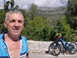 In sella alla nuova bicicletta, Danilo Radaelli, reduce da un incidente ciclistico, ha ripreso a pedalare lungo le strade del Dipartimento delle Alpi Marittime.