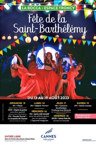 La Fête de la Saint-Barthélémy viene celebrata a Cannes con una settimana di festeggiamenti che impegnerà la vita del quartiere del La Bocca da domenica 13 agosto 2023 fino a sabato 19 agosto.