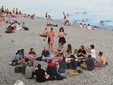 Tantissimi giovani, molti incuranti dell’ordinanza del municipio che vieta il consumo di alcol sulla piaggia, che si siedono in gruppo o si appartano col partner e restano fino oltre le 23, incuranti della notte.