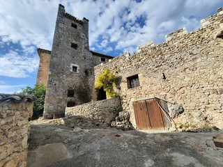 Aggrappato al suo pendio, questo villaggio di media montagna posto nel mezzo di bastioni di cui vi sono alcune vestigia, è coronato in cima da un'alta torre rettangolare (13 ° e 14 ° secolo) con finestre gemelle, che costituisce i bellissimi resti di un castello medievale.