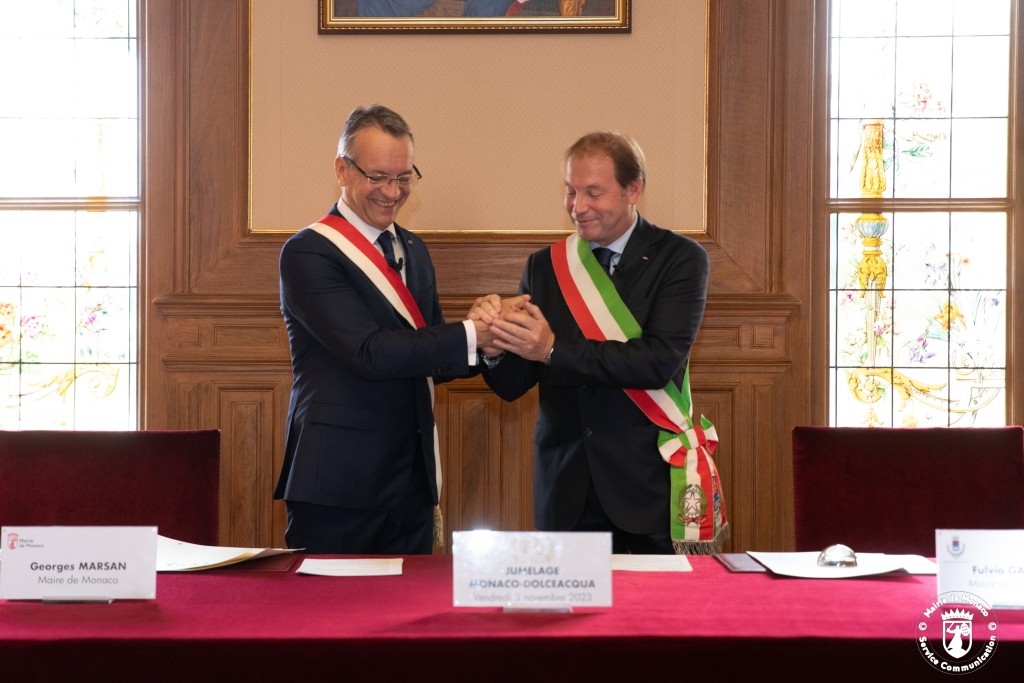 Il gemellaggio tra Monaco e Dolceacqua è stato ufficializzato ieri mattina, venerdì 3 novembre nella Sala Matrimoni del Comune di Monaco, alla presenza di S.A.S. Il Principe Alberto II, di Georges Marsan, Sindaco di Monaco, di Fulvio Gazzola, Sindaco di Dolceacqua, dei membri del Consiglio Comunale del Comune di Monaco e degli eletti del comune ligure, nonchè di Giulio Alaimo, Ambasciatore d'Italia, e di numerosi rappresentanti delle più alte istanze monegasche.