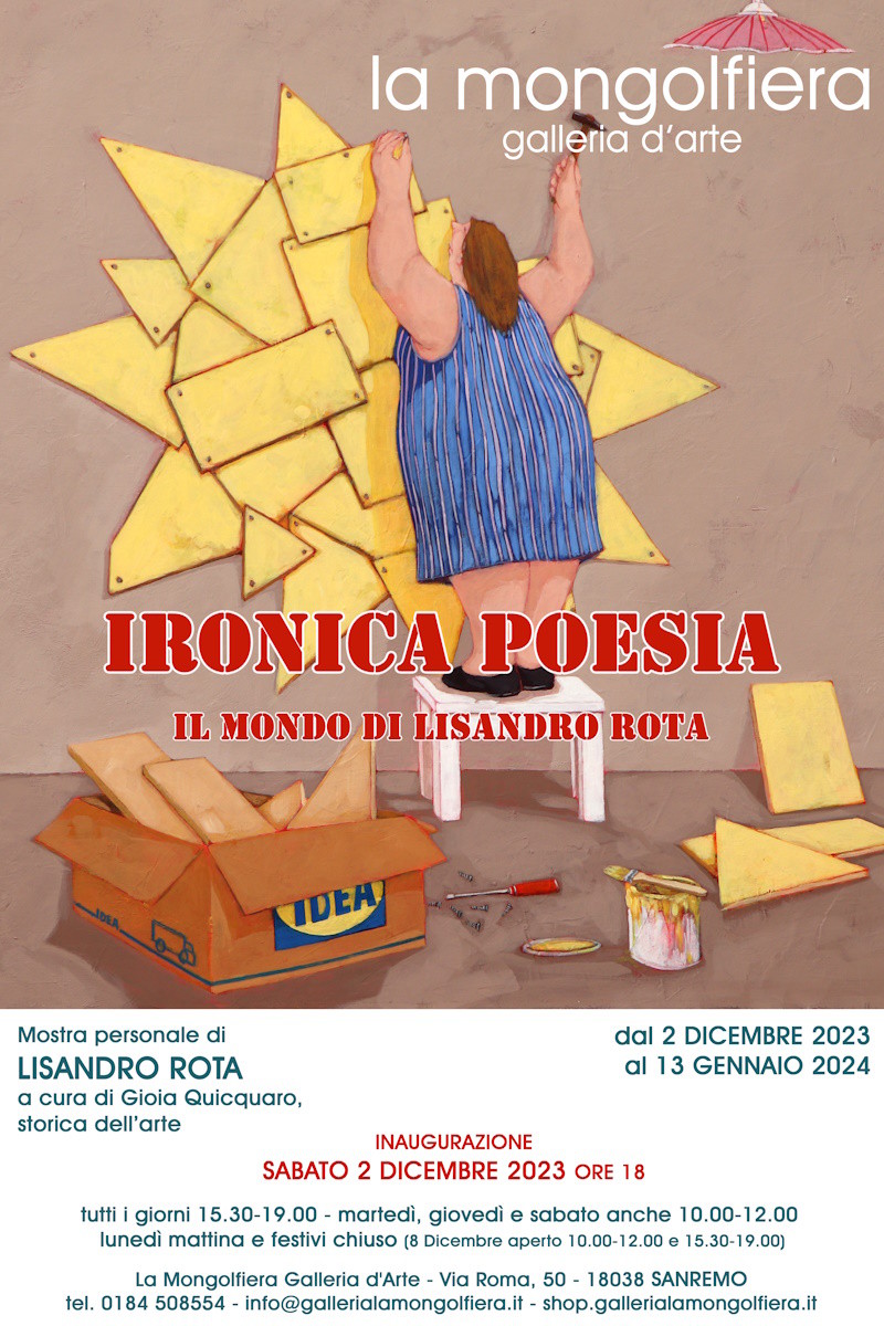 L'attività espositiva della galleria d'arte La Mongolfiera riprende con entusiasmo con la mostra personale Ironica poesia Il mondo di Lisandro Rota visitabile a partire da sabato 2 dicembre.