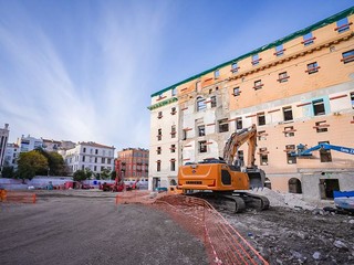 La demolizione delle parti interne del vecchio ospedale, di cui restano ormai solo due muri perimetrali che saranno conservati “a futura memoria” e che caratterizzeranno quella che a tutti gli effetti sarà la sede centralizzata della police nationale e di quella municipale oltre che di moltissimi servizi, tutti raccolti in un unico luogo.