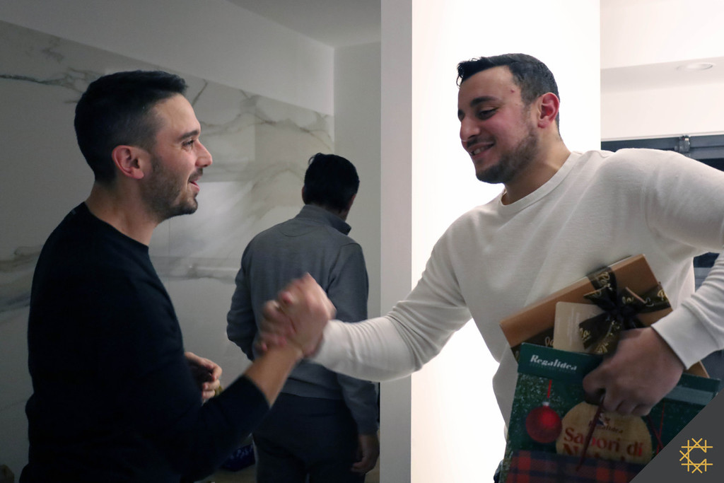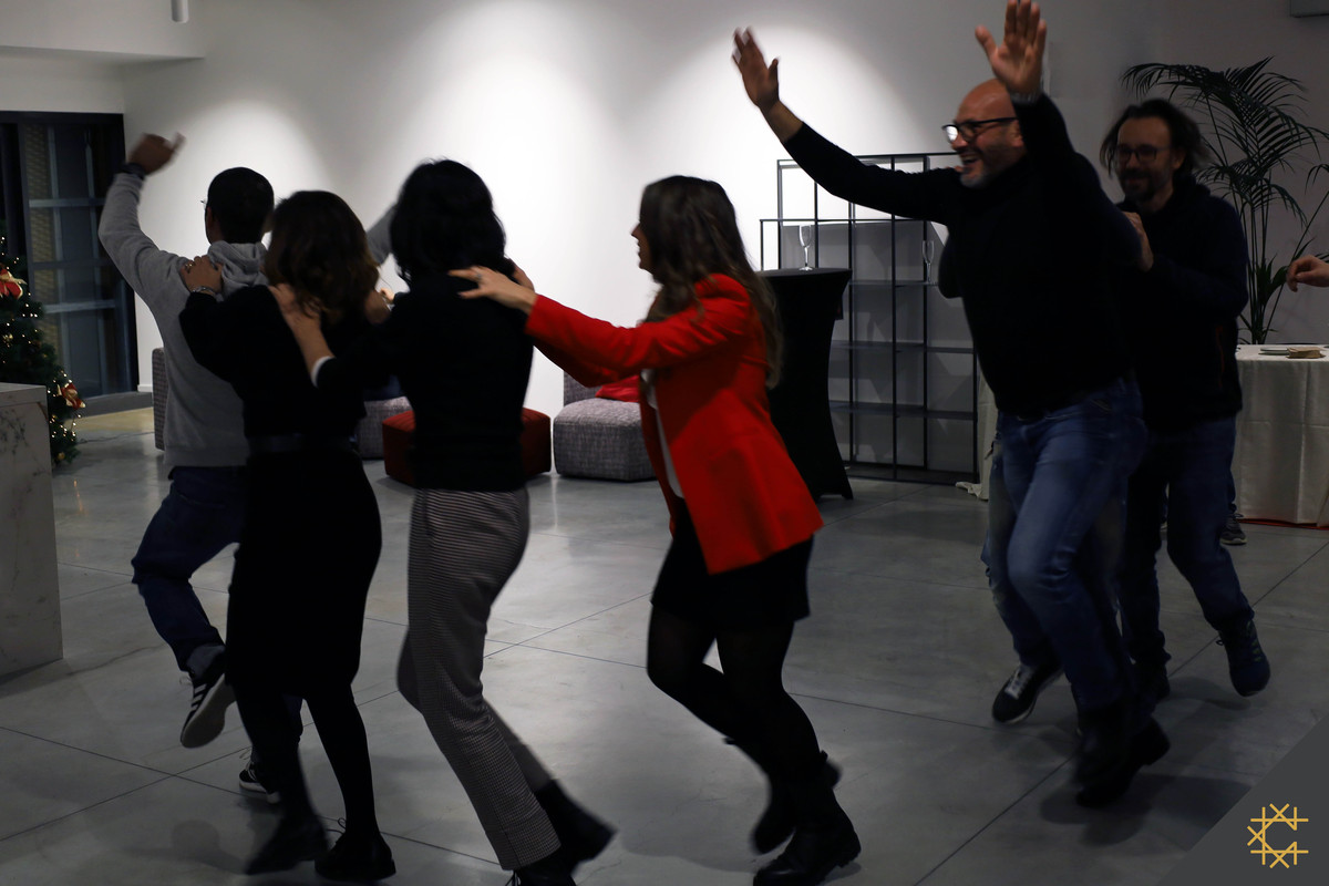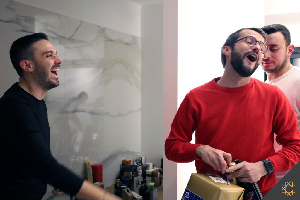 La tradizione dell'azienda Corradini continua con l’organizzazione di un party aziendale con catering, musica e distribuzione, ai propri collaboratori, dei regali ricevuti dai fornitori, oltre ad un omaggio di prodotti tipici dell’Emilia, la regione di origine della famiglia.