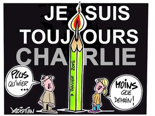 Potremmo intitolare la vignetta di oggi: “Charlie Hebdo, nove anni dopo” .