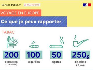 In Francia ogni persona, maggiorenne, può importare dall’estero non più di 200 sigarette, l’equivalente di una “stecca”: prima del 2020 il numero massimo era di 800 sigarette, pari a quattro stecche, ora il quantitativo è stato notevolmente ridimensionato, anche se entro marzo andrà rivisto in aumento.