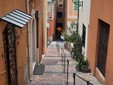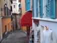 I colori caldi delle case contrastano con le tonalità chiare delle persiane, spesso semichiuse, che lasciano intravedere la vita tranquilla degli abitanti.