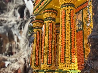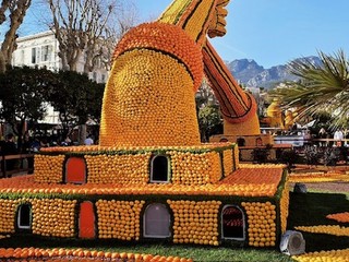 Taglio del nastro da parte delle autorità, sindaco Yves Juhel in testa, poi la festa si è spostata nelle strade con le sfilate ed i tanti allestimenti rigorosamente a base di agrumi che abbelliranno Mentone di qui fino al 3 marzo prossimo.