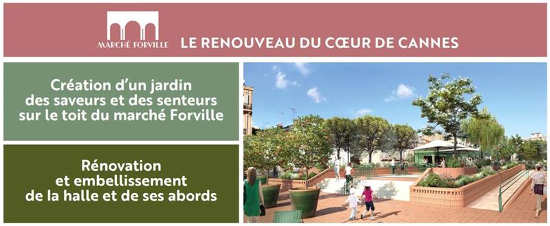 Il Comune di Cannes ha avviato il riadattamento completo della piazza e della halle del mercato di Forville, nonché la creazione di un giardino pubblico sul tetto.